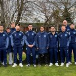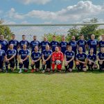 Bildunterschrift v.l.: Dennis (Gomez) Herrmann – Cheftrainer- / Kevin Reinke -Torwarttrainer-/ Lukas Tups/ Adrian Kasemi/ André Bullach/ Christopher Stobbe/ Robin Eßer/ Marcel Neie, Dominik Plew/ Max Menniger/ Joel Kreipe / Lukas Romfeld / Timo Romfeld/ Daniel Marek -Fußball-Abteilungsleiter-