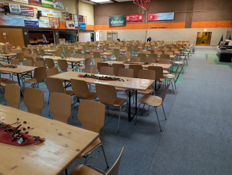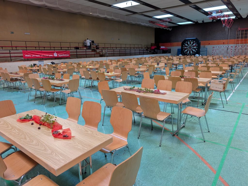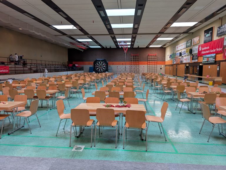 Wenn Engagement ein Gesicht hat, dann trĂ€gt es heute viele: 23 Helferinnen und Helfer â also 46 HĂ€nde â haben heute in nur 59 Minuten die gesamte Infrastruktur fĂŒr den Tag des Wanderns in der Steinberghalle Diekholzen aufgebaut.
