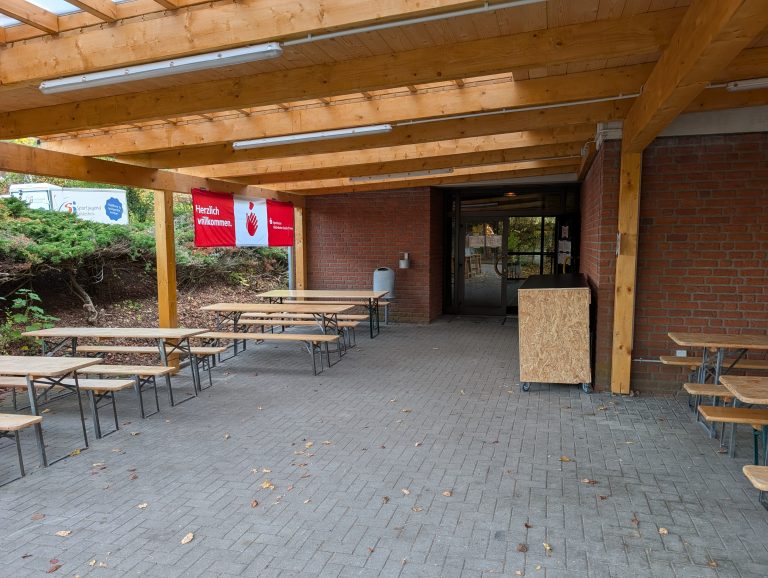 StĂŒhle, BĂ€nke, Tische, Tresen â alles steht! Ein Kraftakt voller Lachen, Teamgeist und Stolz.