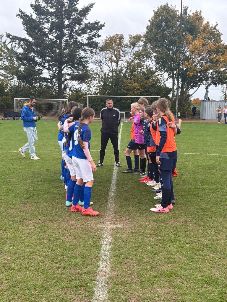 Von Beginn an machte die Heimelf Druck und spielte mutig nach vorne. 💪 Die Zuschauer sahen, dass das Team unbedingt gewinnen wollte – jede Aktion, jeder Zweikampf wurde gefeiert! 🔥 Doch auch die Gäste aus Hildesheim blieben gefährlich und setzten mit schnellen Kontern Nadelstiche. Immer wieder war aber auf unsere überragende Torhüterin Greta Nestmann 🧤 Verlass, die mit starken Paraden den Kasten sauber hielt.