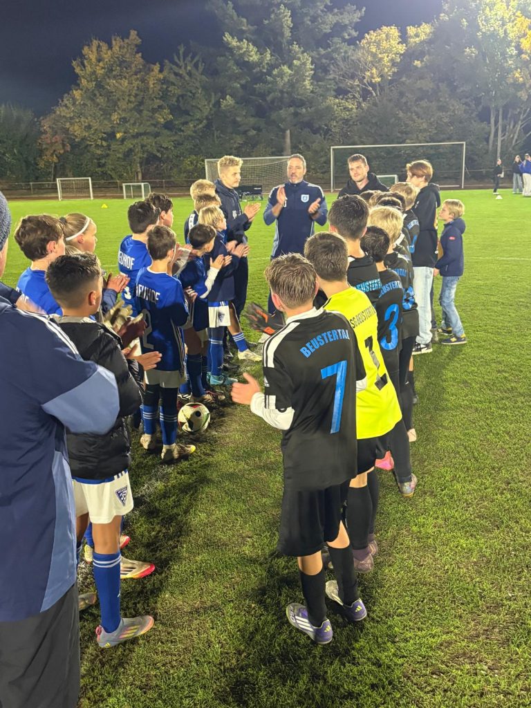 Von Beginn an zeigten die Jungs in Blau und Weiß, dass sie diesen Sieg unbedingt wollten. Mit viel Druck, Leidenschaft und starkem Kombinationsspiel drängte die Heimelf die Gäste früh in die eigene Hälfte.