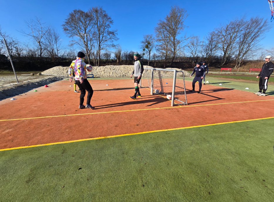 Kurzerhand wurde aus dem alten Tennisplatz, heute Basketballfläche, ein Trainingsgelände. Kein perfekter Rasen, keine Linien, kein Komfort. Stattdessen kalte Luft, harter Untergrund und Spieler, die einfach nur eines wollten: zusammen Fußball spielen.