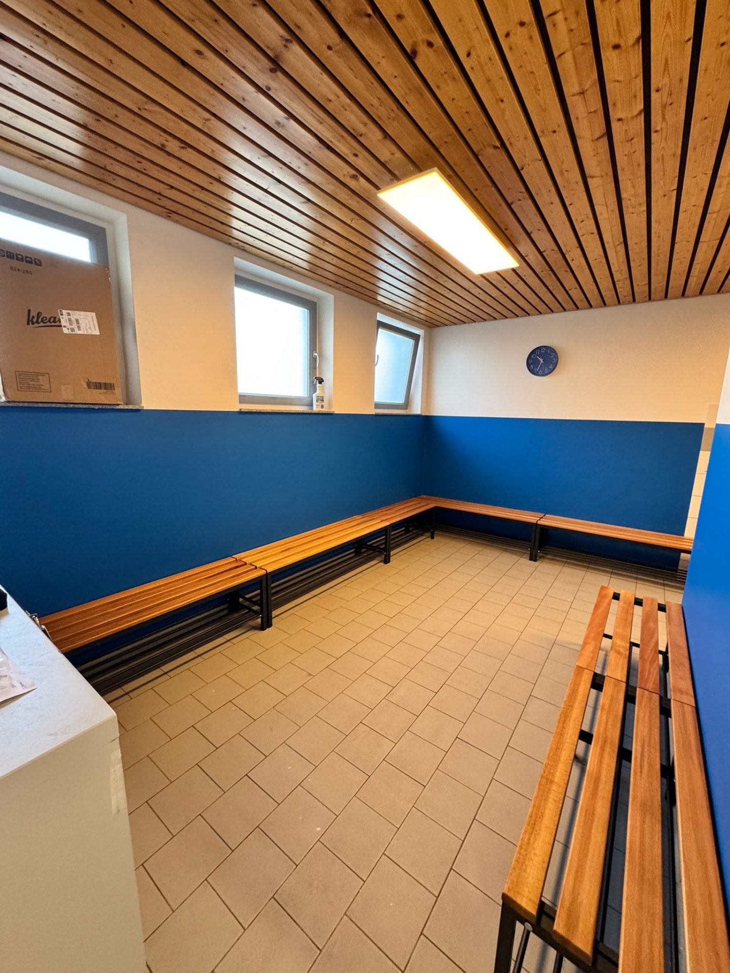Die Haken und Bänke aus Kabine 4 wurden zusätzlich in Kabine 3 integriert – damit steht den gegnerischen Mannschaften künftig mehr Platz und bessere Ausstattung zur Verfügung.