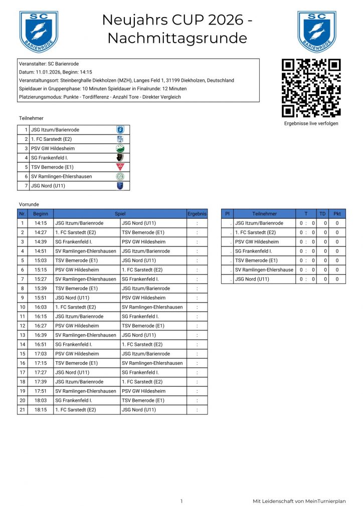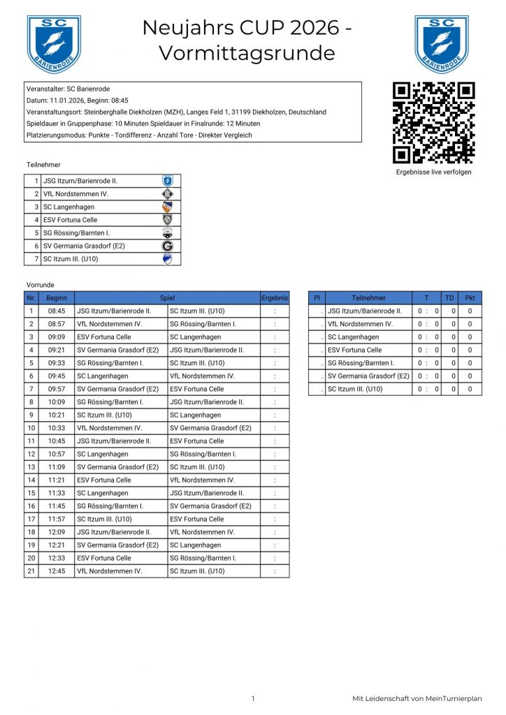 Der Neujahrscup der E-Jugend ist Teil der groĂen Turnierserie des SC Barienrode. Rund um den Jahreswechsel wird die Steinberghalle Diekholzen zur FuĂballarena:
