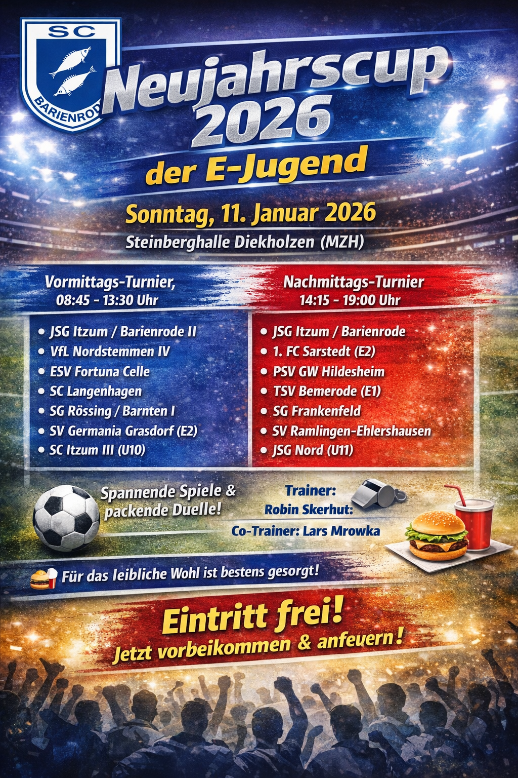 Der Neujahrscup der E-Jugend ist Teil der groĂen Turnierserie des SC Barienrode. Rund um den Jahreswechsel wird die Steinberghalle Diekholzen zur FuĂballarena: