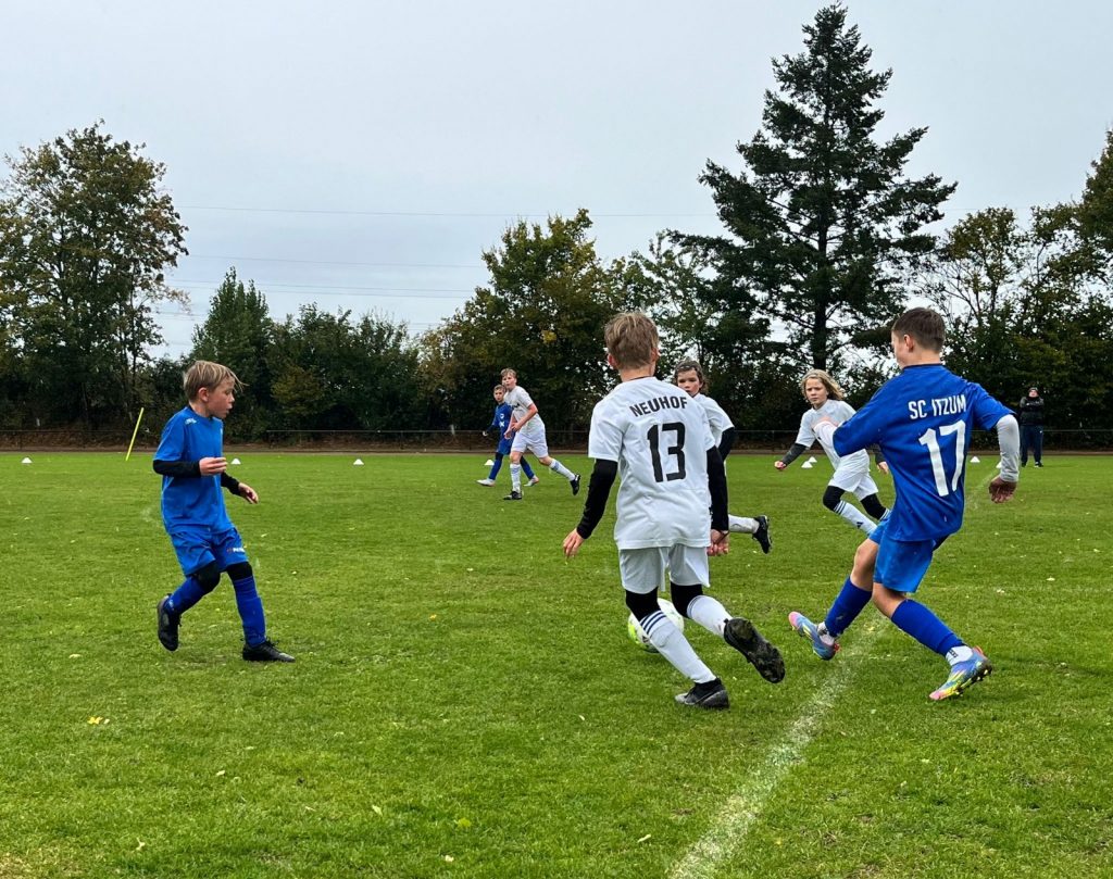 Nieselregen, rutschiger Platz, schnelle Bälle – doch unsere JSG Itzum/Barienrode I ließ sich davon nicht beirren und setzte sich eindrucksvoll mit 5:0 gegen die U11 II des SV BW Neuhof durch.