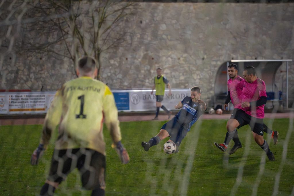 Nach einer Ecke von Philipp (Pippo) Hartmann auf den zweiten Pfosten brachte Nille den Ball stark zurück in die Mitte – und Spielertrainer Dennis „Gomez“ Herrmann ließ sich nicht zweimal bitten und schob gezielt zum 1:0 ein.