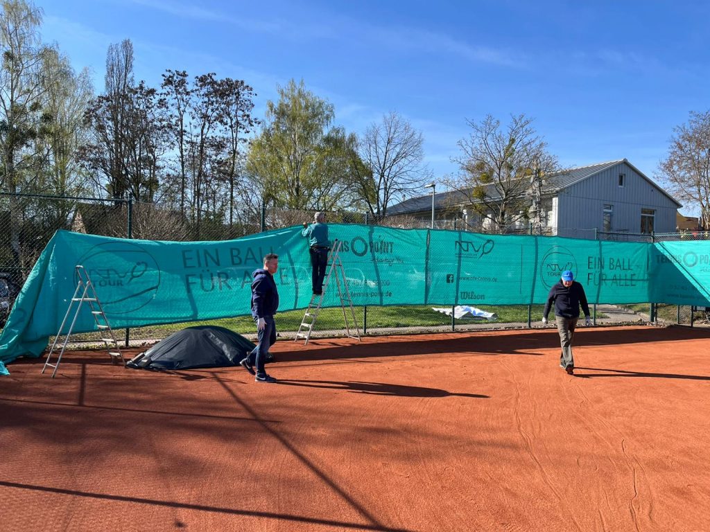 Im Mittelpunkt stand dabei der Ganzjahresplatz, auf dem neuer Sand aufgetragen wurde, um die Spielqualität weiter zu optimieren. Parallel dazu wurden auf den Plätzen 2 und 3 die Tennisblenden angebracht, die das Erscheinungsbild der Anlage weiter aufwerten und für ein stimmiges Gesamtbild sorgen.