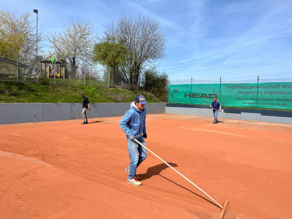 Zahlreiche engagierte Tennisspieler haben in einem intensiven Arbeitseinsatz dafür gesorgt, dass die Anlage bestens auf die neue Saison vorbereitet ist. Traditionell übernehmen diese Aufgaben die Tennismänner – und auch diesmal wurde mit großem Einsatz, Teamgeist und viel Herzblut gearbeitet.