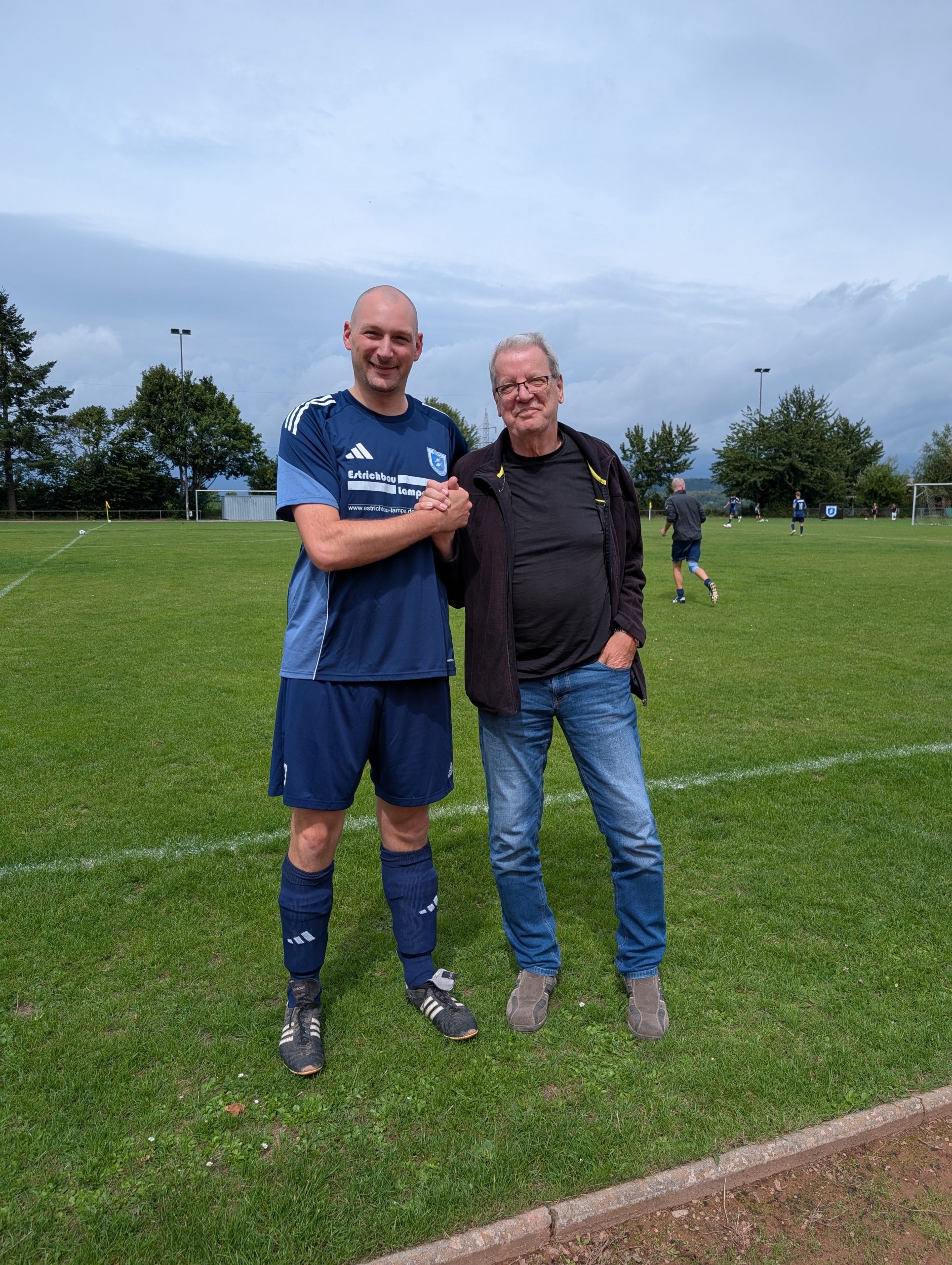 Foto: Trainer Dennis „Gomez“ Herrmann (links) begrĂźĂt Urgestein Achim Genath