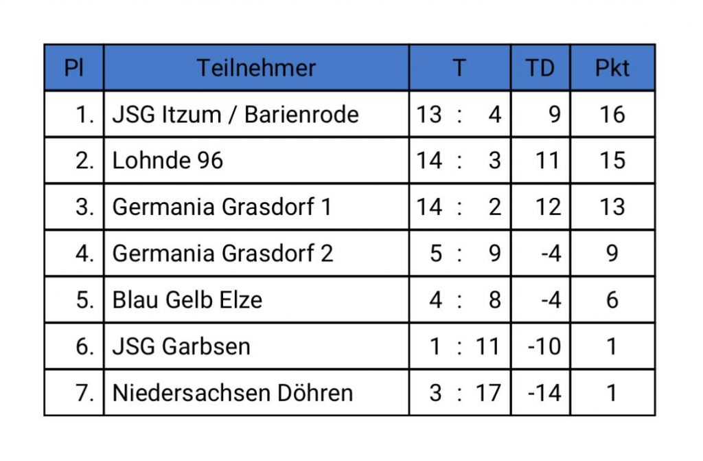 Mit Teams wie Germania Grasdorf (1 & 2), Lohnde 96, JSG Garbsen, Blau-Gelb Elze und Niedersachsen Döhren war das Teilnehmerfeld stark und sehr ausgeglichen.